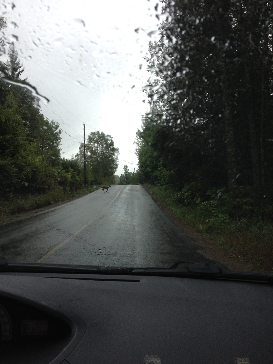 On the way, we saw two deers; a doe and her baby. Jeff let them cross the road while I quickly took pictures with his phone, and he resumed his driving on the pebble roads within the woods.